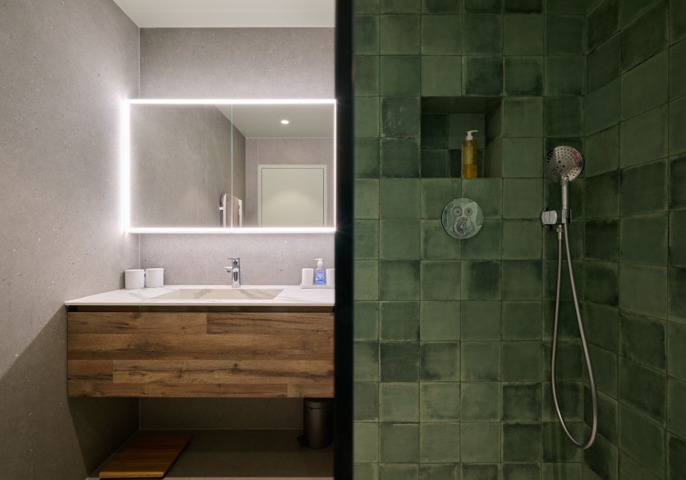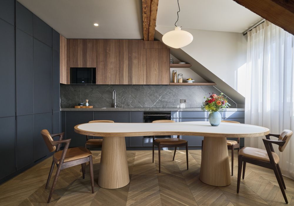 Two bedrooms and a living area benefit from sublime natural light and the charm of exposed beams. While it was essential to preserve and enhance the visible structure, the challenge was also to harmonize with it.
